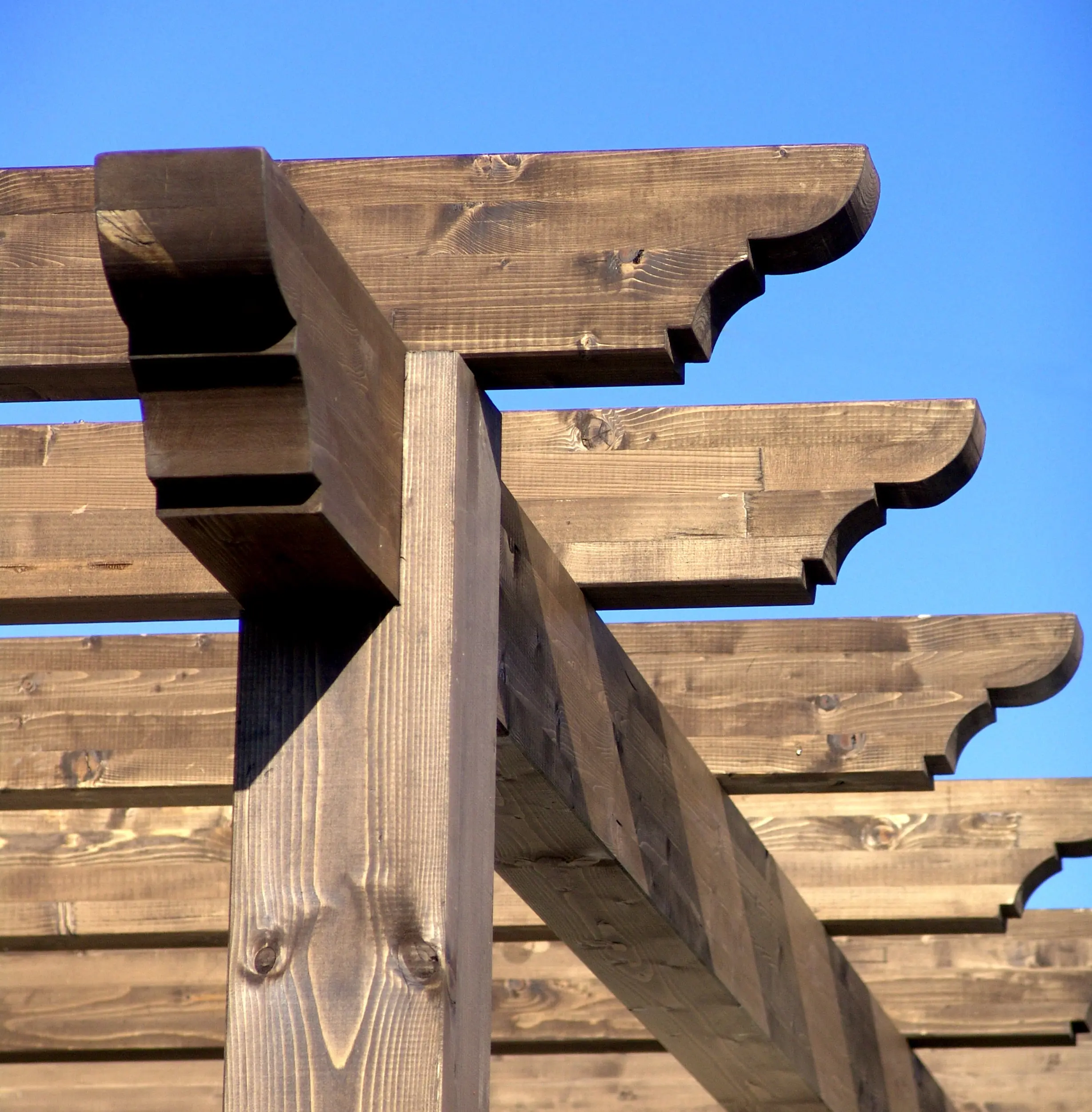 Podemos colocar esta pérgola tanto en ambientes rústicos como en espacios más modernos. Basta con elegir el tipo de terminación de las vigas para que cambie su aspecto por completo. Indistintamente podemos escoger entre pecho paloma, corte recto, corte chaflán…